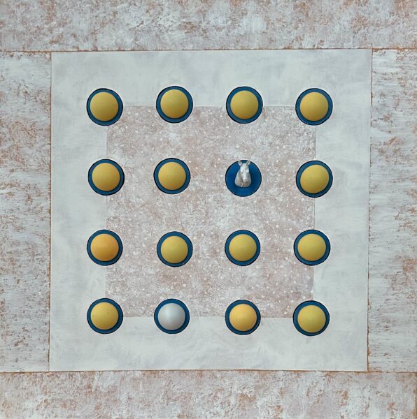 Akryl og bordtennisbolde på lærred.